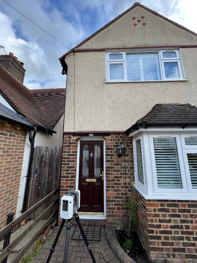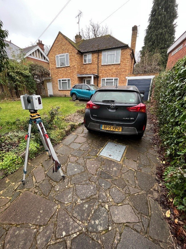 Mill Lane project involved detailed topographic and elevation data collection for a residential property extension design.